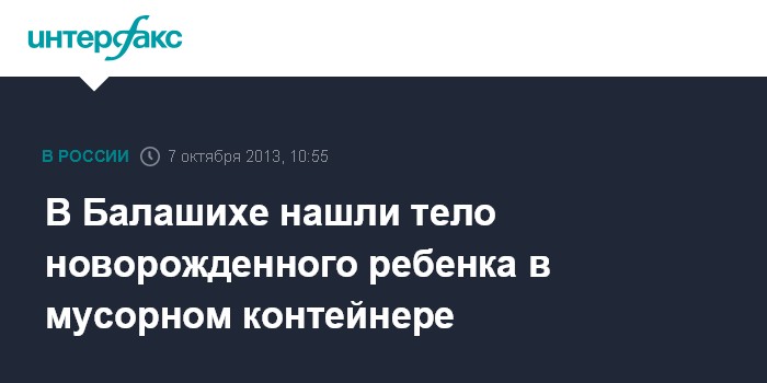 Москва. 7 октября. INTERFAX.RU - Тело мертвого младенца обнаружили в контейнере для мусора в одном из микрорайонов подмосковной Балашихи, сообщил "Интерфаксу" источник в правоохранительных органах.