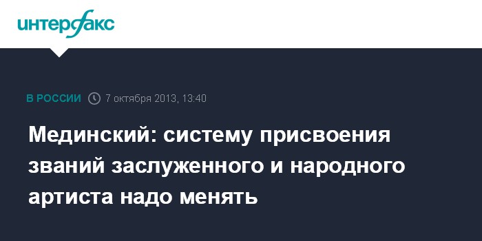 Москва. 7 октября. INTERFAX.RU - Процедура присвоения званий заслуженных и народных артистов должна быть пересмотрена, заявил министр культуры РФ Владимир Мединский.