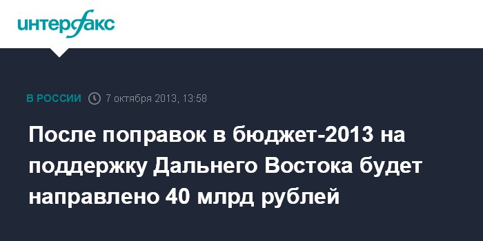 После поправок в бюджет-2013 на поддержку Дальнего Востока будет направлено 40 млрд рублей