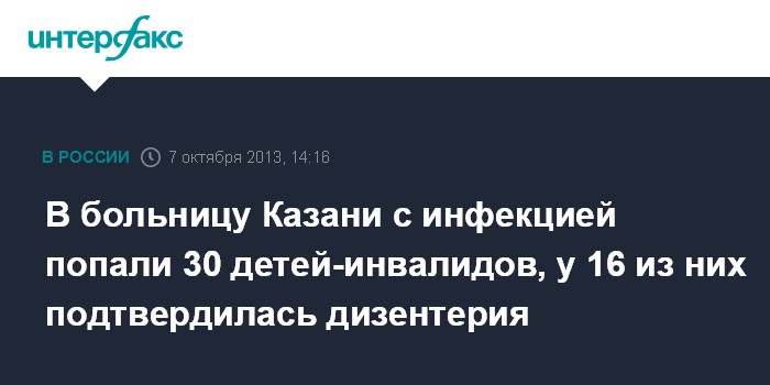 В больницу Казани с инфекцией попали 30 детей-инвалидов, у 16 из них подтвердилась дизентерия