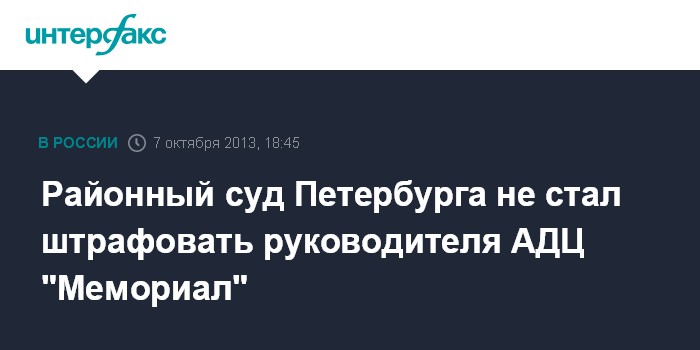Районный суд Петербурга не стал штрафовать руководителя АДЦ "Мемориал"