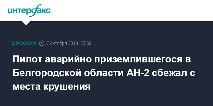 Пилот аварийно приземлившегося в Белгородской области АН-2 сбежал с места крушения