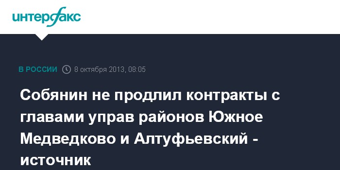 Собянин не продлил контракты с главами управ районов Южное Медведково и Алтуфьевский - источник
