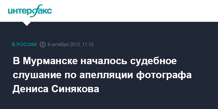В Мурманске началось судебное слушание по апелляции фотографа Дениса Синякова