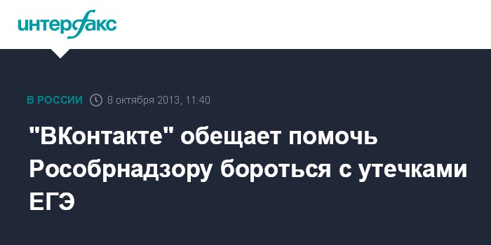 Москва. 8 октября. INTERFAX.RU - Социальная сеть "ВКонтакте" поможет не допускать в 2014 г. утечек ответов единого государственного экзамена (ЕГЭ), сообщил Рособрнадзор.