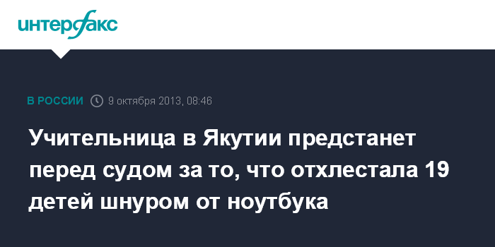 Учительница в Якутии предстанет перед судом за то, что отхлестала 19 детей шнуром от ноутбука