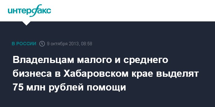 Владельцам малого и среднего бизнеса в Хабаровском крае выделят 75 млн рублей помощи