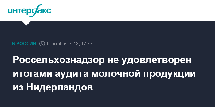 Москва. 9 октября. INTERFAX.RU - Предварительные итоги аудита поставщиков молочной продукции из Нидерландов в РФ неудовлетворительные, заявил журналистам руководитель Россельхознадзора Сергей Данкверт.