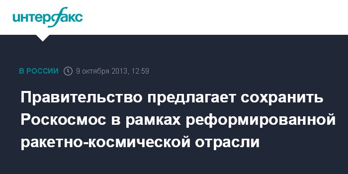 "Что касается самой промышленности, наше предложение сводится к тому, чтобы консолидировать разработчиков и производителей основных видов ракетно-космической техники в рамках единой корпорации - Объединенной ракетно-космической корпорации, которая может быть создана как открытое акционерное общество", - сказал вице-премьер.