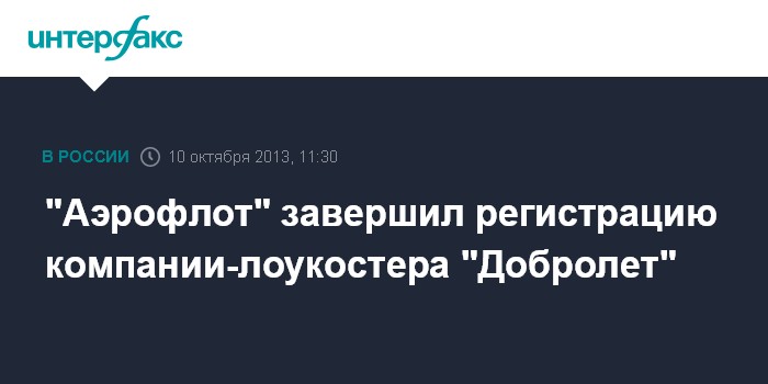 Москва. 10 октября. INTERFAX.RU - ОАО "Аэрофлот - российские авиалинии" 4 октября стало владельцем 100% ООО "Добролет", сообщил перевозчик.
