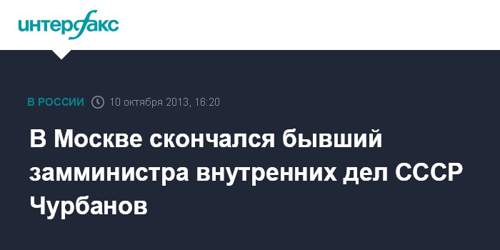 Москва. 10 октября. INTERFAX.RU - Телеканал НТВ сообщил в четверг о кончине Юрия Чурбанова, бывшего заместителя министра внутренних дел СССР, зятя бывшего советского лидера Леонида Брежнева.