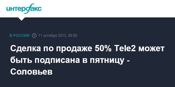 Сделка по продаже 50% Tele2 может быть подписана в пятницу - Соловьев