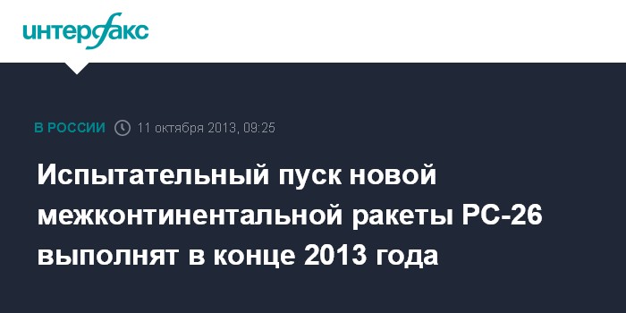 Испытательный пуск новой межконтинентальной ракеты PC-26 выполнят в конце 2013 года