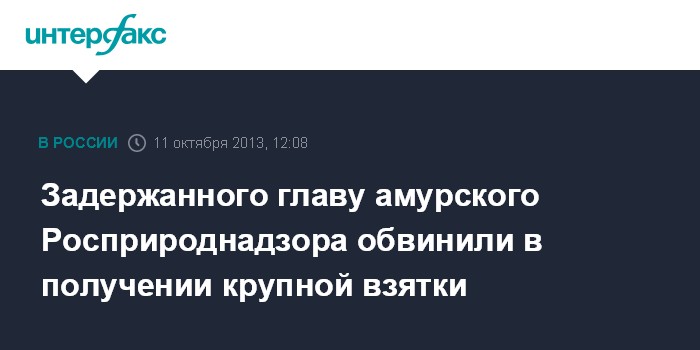 Кроме того, по данным ведомства, в отношении предпринимателя, которого подозревают в даче взятке главе амурского Росприроднадзора, также возбуждено уголовное дело по ч. 5 ст. 291 (дача взятки в особо крупном размере).