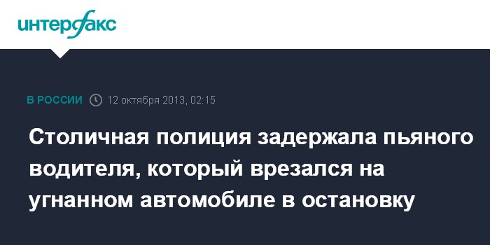 Москва. 12 октября. ИНТЕРФАКС – Автомобиль, на котором пьяный водитель врезался в автобусную остановку на северо-востоке Москвы, был угнан.