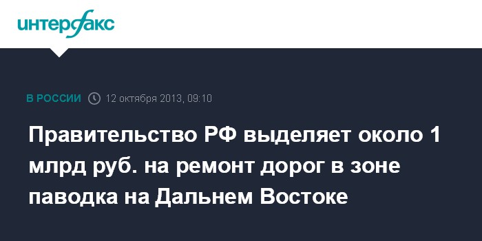 Правительство РФ выделяет около 1 млрд руб. на ремонт дорог в зоне паводка на Дальнем Востоке