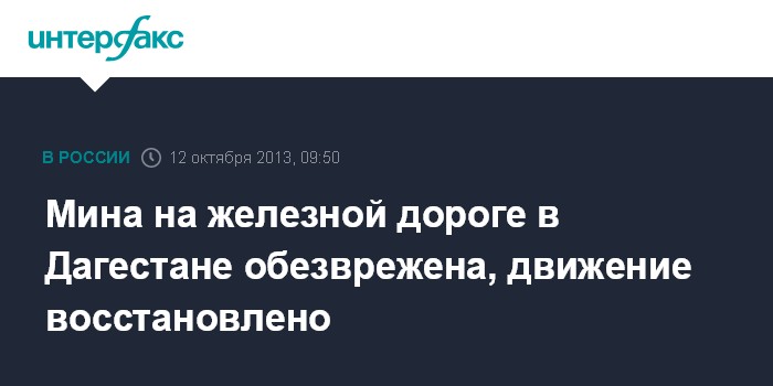 Мина на железной дороге в Дагестане обезврежена, движение восстановлено