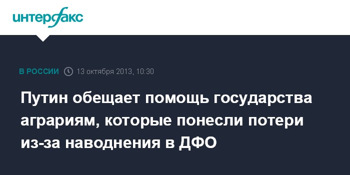 Путин обещает помощь государства аграриям, которые понесли потери из-за наводнения в ДФО