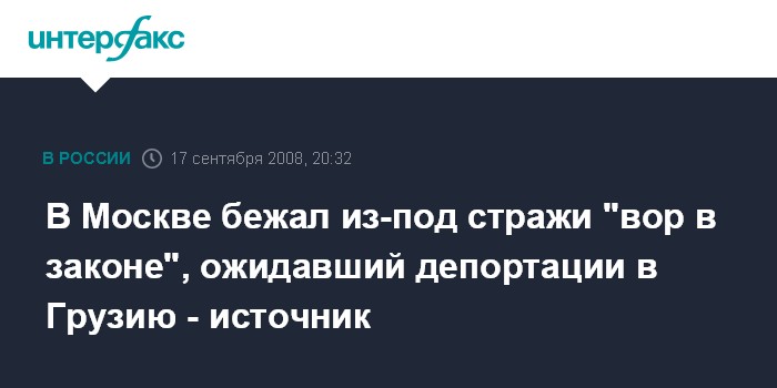 Москва. 17 сентября. ИНТЕРФАКС-МОСКВА - Побег из-под стражи совершил в Москве грузинский "вор в законе", который известен в криминальных кругах как "Гиви Кутаисский", сообщил "Интерфаксу" источник в правоохранительных органах.