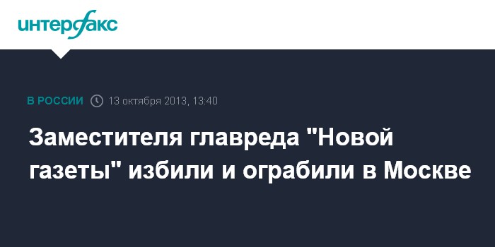 Заместителя главреда "Новой газеты" избили и ограбили в Москве