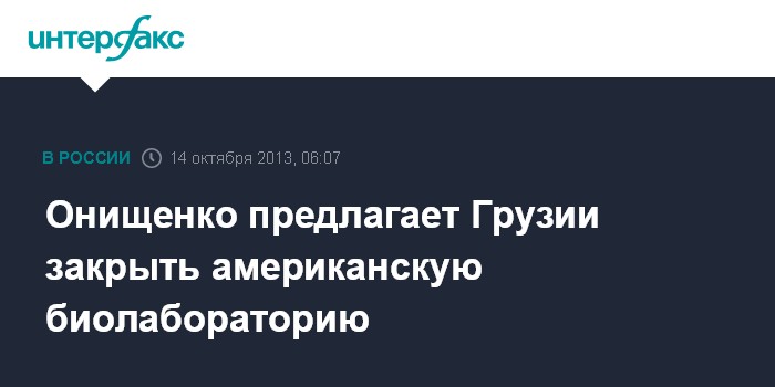 "Наоборот, это говорит о полном непонимании проблемы мощности и значения этой лаборатории. Говоря упрощенно, всего бюджета здравоохранения Грузии вряд ли хватит для поддержания в рабочем состоянии этого мощного военного объекта. Мы предлагаем очень серьезно оценить сложившуюся ситуацию и принять необходимое и возможное решение, которое снимет нашу озабоченность", - сказал Г.Онищенко.