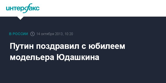Москва. 14 октября. INTERFAX.RU - Президент России Владимир Путин поздравил известного российского кутюрье, заслуженного деятеля искусств РФ Валентина Юдашкина с 50-летием, сообщает пресс-служба президента России.