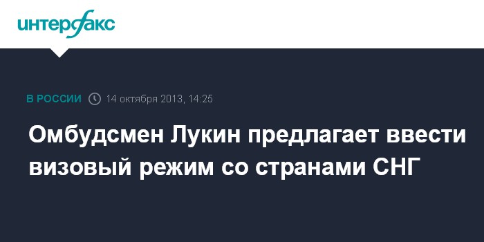Москва. 14 октября. INTERFAX.RU - Уполномоченный по правам человека в России Владимир Лукин предлагает ввести визовый режим со странами СНГ в рамках мер по борьбе с нелегальной миграцией.