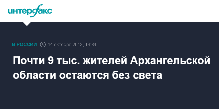 Архангельск. 14 октября. INTERFAX.RU - Жители пяти муниципальных районов Архангельской области остаются без света в результате аварии на линии электропередачи.