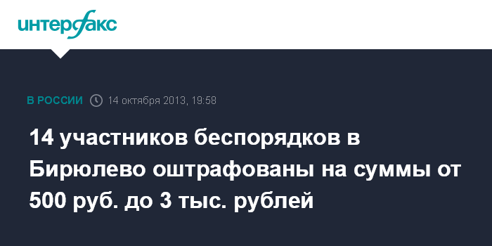 14 участников беспорядков в Бирюлево оштрафованы на суммы от 500 руб. до 3 тыс. рублей