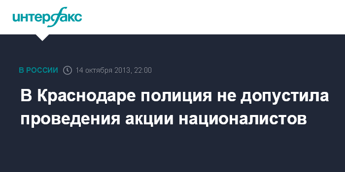 Краснодар. 14 октября. INTERFAX.RU - Полиция Краснодара в понедельник вечером предотвратила попытку провести в центре города несанкционированную акцию националистически настроенной молодежи.