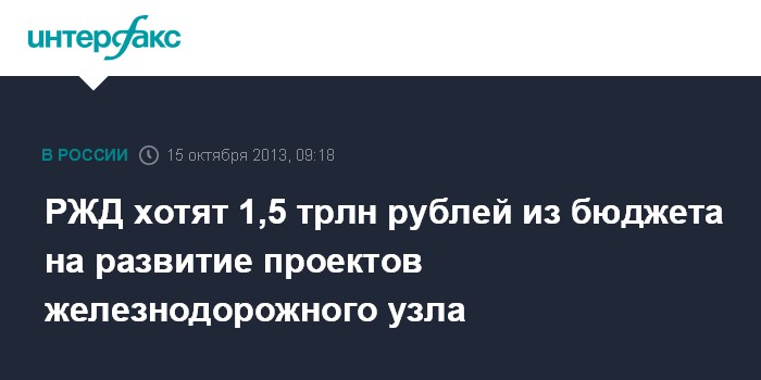 Москва. 15 октября. INTERFAX.RU - ОАО "Российские железные дороги" (РЖД) рассчитывает на масштабное финансирование из федерального бюджета проектов по развитию московского железнодорожного узла.