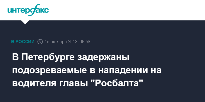 В Петербурге задержаны подозреваемые в нападении на водителя главы "Росбалта"