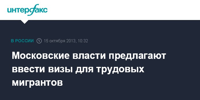 Москва. 15 октября. INTERFAX.RU - В правительстве Москвы поддерживают идею введения визового режима для привлекаемых в Россию иностранных работников.