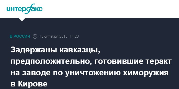 Задержаны кавказцы, предположительно, готовившие теракт на заводе по уничтожению химоружия в Кирове