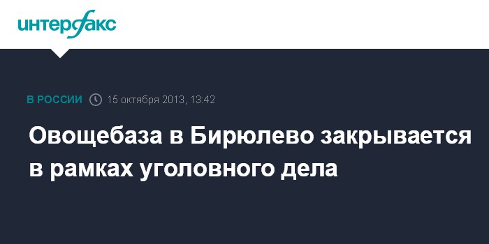 Москва. 15 октября. INTERFAX.RU - В ходе расследования уголовного дела о массовых беспорядках в столичном районе Бирюлево принято решение о закрытии местной плодоовощной базы, сообщил официальный представитель СКР Владимир Маркин.