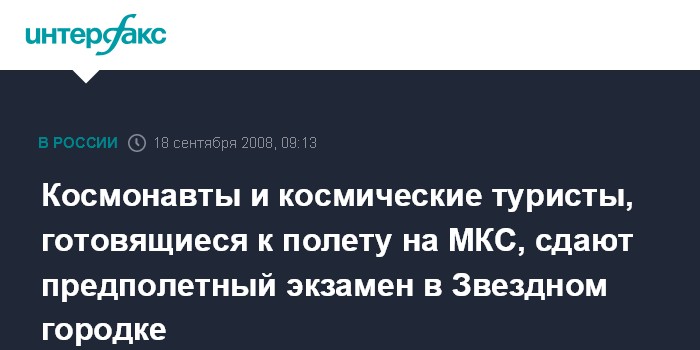 Москва. 18 сентября. INTERFAX.RU - В центре подготовки космонавтов (ЦПК) начались предполетные экзаменационные тренировки основного и дублирующего экипажей 18-й по счету экспедиции на Международную космическую станцию (МКС), а также двух космических туристов, передает корреспондент "Интерфакс-АВН".