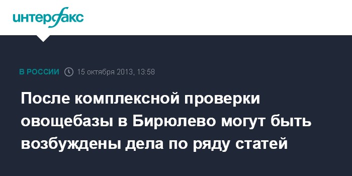 Москва. 15 октября. INTERFAX.RU - Плодоовощная база в Западном Бирюлево в Москве будет подвергнута комплексной проверке контролирующих органов, не исключены уголовные дела о коррупции, сообщил "Интерфаксу" официальный представитель СКР Владимир Маркин.
