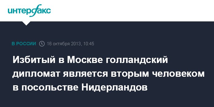 Избитый в Москве голландский дипломат является вторым человеком в посольстве Нидерландов