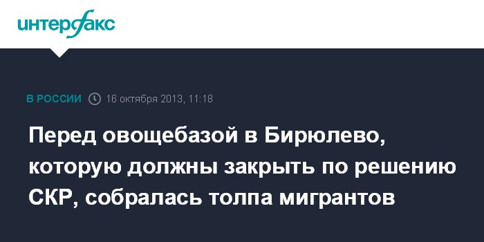 Москва. 16 октября. INTERFAX.RU - Значительное число мигрантов собралось в среду перед входом на базу, расположенную в столичном районе Бирюлево-Западное, решение о закрытии которой принял накануне Следственный комитет России.