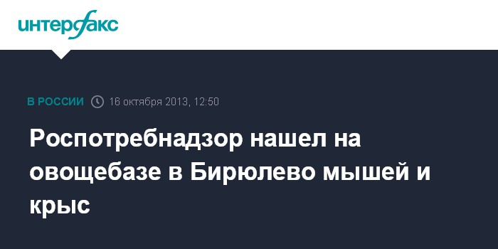 Москва. 16 октября. INTERFAX.RU - На овощной базе в Бирюлево обнаружены источники опасных инфекций, сообщил "Интерфаксу" в среду руководитель Роспотребнадзора, главный санитарный врач РФ Геннадий Онищенко. "Там есть проблемы с заселенностью грызунами - это мыши и крысы, которые являются носителями опасных инфекционных заболеваний", - заявил он.