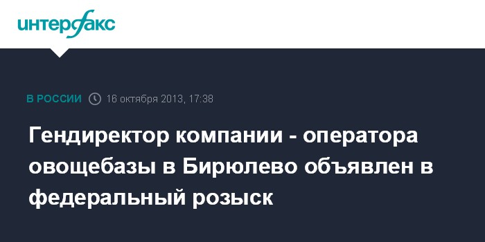 Гендиректор компании - оператора овощебазы в Бирюлево объявлен в федеральный розыск