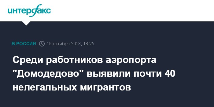 Москва.16 октября. INTERFAX.RU - Почти четыре десятка работников московского аэропорта "Домодедово" оказались нелегальными мигрантами, они проживали в бытовке, неподалеку от взлетно-посадочной полосы, сообщили в пресс-службе управления на транспорте МВД по ЦФО.