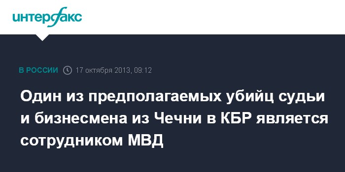 Пятигорск. 17 октября. INTERFAX.RU - Полицейские установили, что один из подозреваемых в убийстве арбитражного судьи и бизнесмена из Чечни в Кабардино-Балкарии является действующим сотрудником МВД, сообщили "Интерфаксу" в республиканском министерстве внутренних дел.