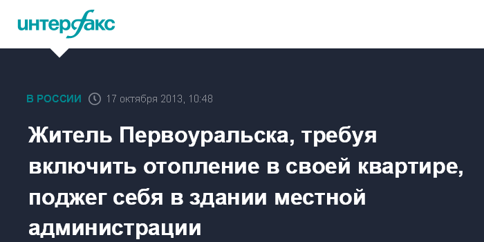 Житель Первоуральска, требуя включить отопление в своей квартире, поджег себя в здании местной администрации