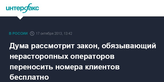 Дума рассмотрит закон, обязывающий нерасторопных операторов переносить номера клиентов бесплатно