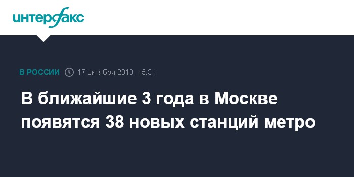 Москва. 17 октября. INTERFAX.RU - В ближайшие 3 года в Москве планируется проложить 71,4 км линий метро и открыть 38 станций и 13 депо, заявил заммэра Москвы Марат Хуснуллин.