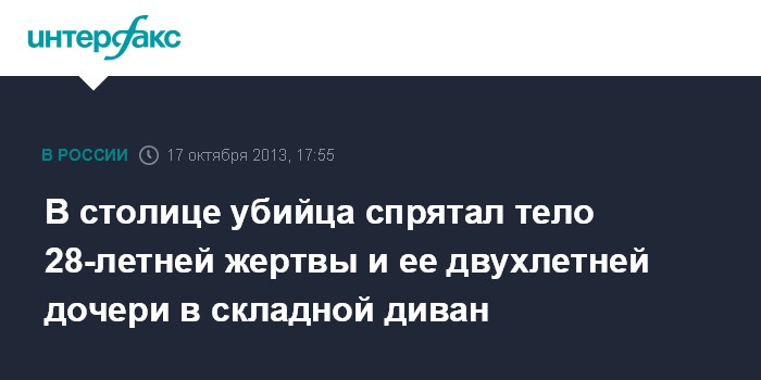 Москва. 17 октября. INTERFAX.RU - Женщина обнаружила в квартире на юго-западе Москвы тела 28-летней дочки и двухлетней внучки, которые были спрятаны в конструкцию дивана.