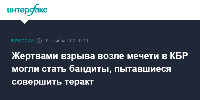 Жертвами взрыва возле мечети в КБР могли стать бандиты, пытавшиеся совершить теракт