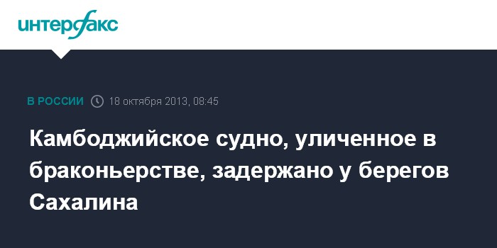 "Юго-восточнее мыса Анива (юг Сахалина) в пределах исключительной экономической зоны РФ остановлен и доставлен для дальнейшего разбирательства в сахалинский порт Корсаков теплоход "Орион" под флагом Камбоджи с российским экипажем на борту", - сказал собеседник агентства.