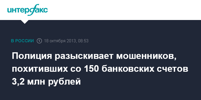 Полиция разыскивает мошенников, похитивших со 150 банковских счетов 3,2 млн рублей